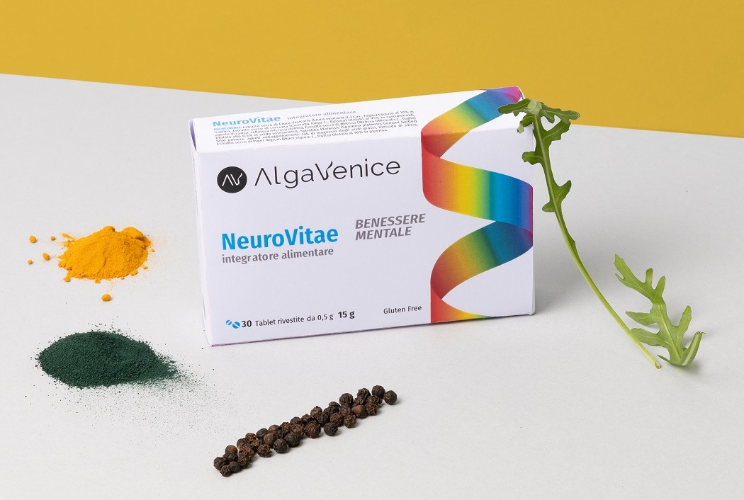 NeuroVitae è n integratore alimentare con Curcuma Longa, Spirulina Platensis, Piper Nigrum, Melissa Officinalis e Icariina.